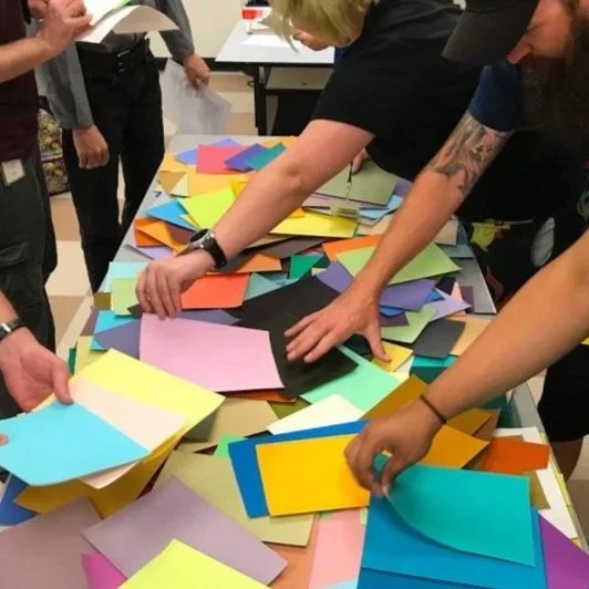 Collaborate and use tempera paints to create a variety of painted papers in each hue family for use in the classroom.