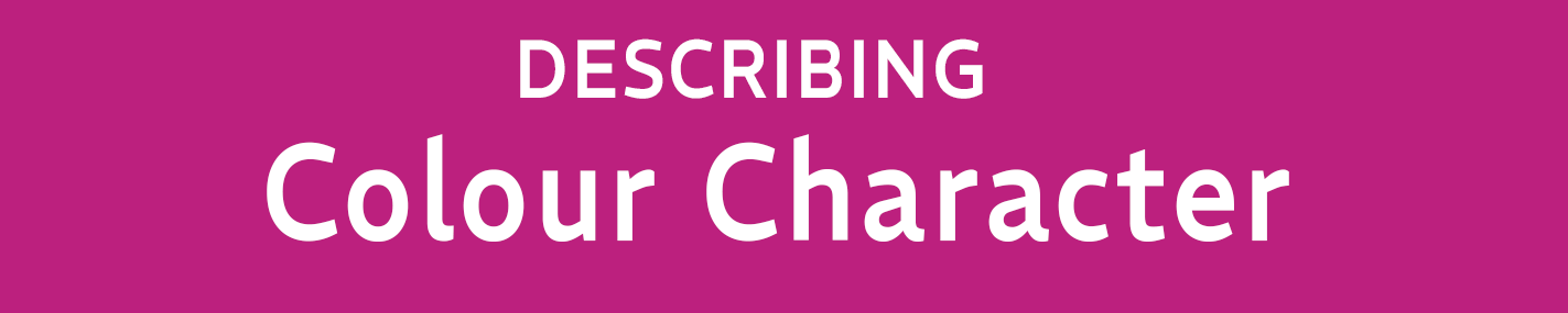 Colours can be described by their hue family and character.