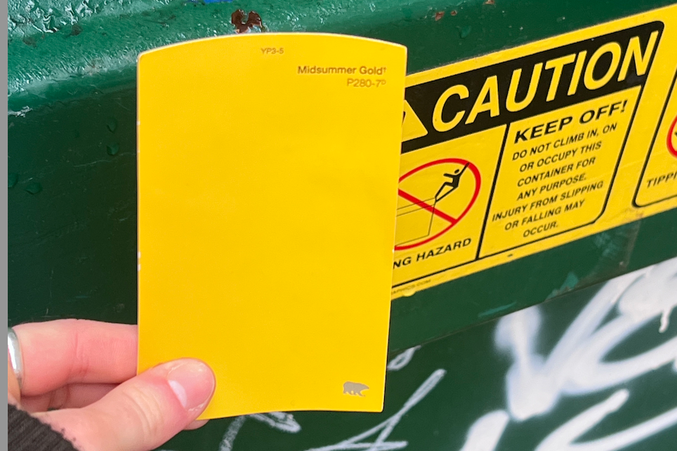 Find items that appear to match the paint swatch from far away. Then place the swatch against the items. Do they match now?